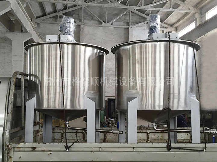 ③ 槳式攪拌器有平槳式和斜槳式兩種。平槳式攪拌器由兩片平直槳葉構成。槳葉直徑與高度之比為4~10,圓周速度為1.5~3m/s,所產生的徑向液流速度較小。斜槳式攪拌器的兩葉相反折轉45°或60°,因而產生軸向液流。槳式攪拌器結構簡單,常用于低粘度液體的混合以及固體微粒的溶解和懸浮。