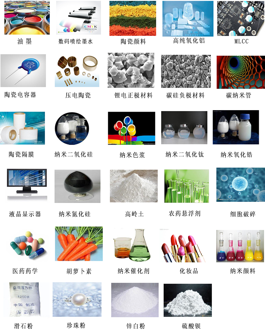 陶瓷材料、電池材料、數碼噴墨、高性能涂料、制藥等領域測試。