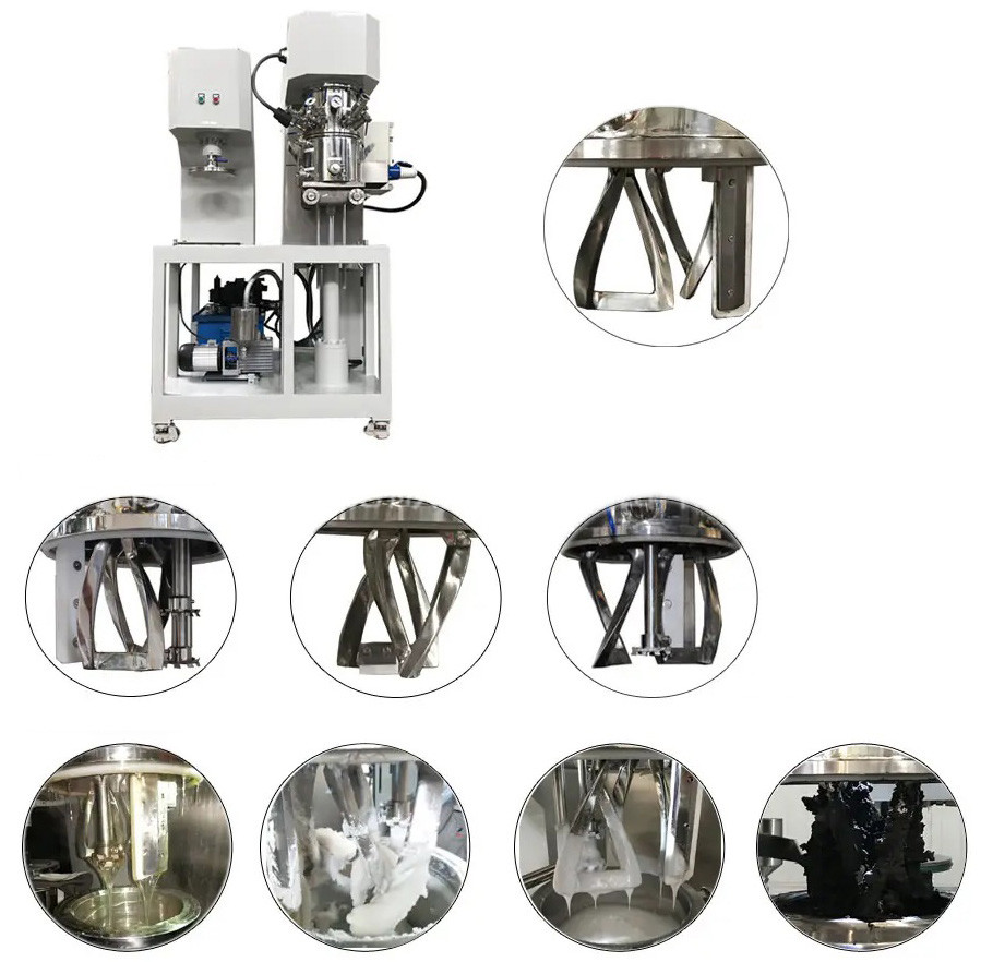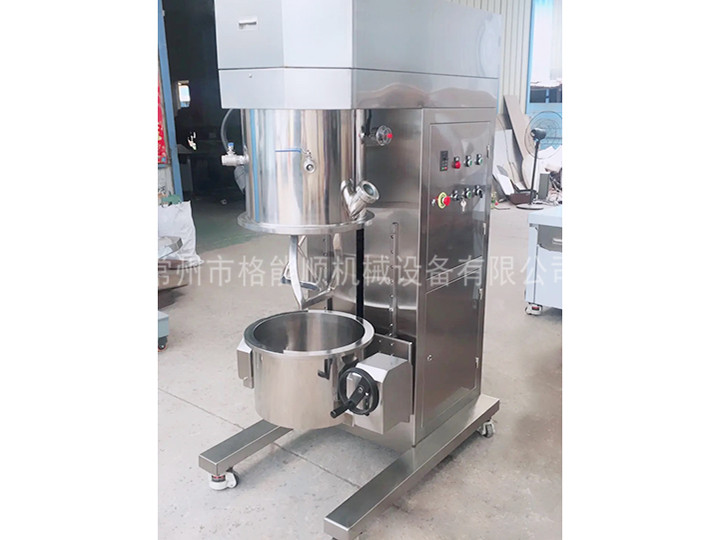 集反應(yīng)、混合、混煉、分散為一體的高效、多用途設(shè)備;釜內(nèi)攪拌槳,在公轉(zhuǎn)的同時也自轉(zhuǎn),使物料上下及四周流動,從而在很短時間內(nèi)達到混合效果,攪拌過程中無死角且效果是普通攪拌機的十幾倍;